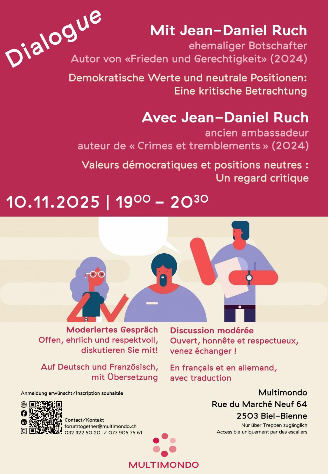 Kommt und diskutiert mit! Offen, ehrlich und respektvoll, auf Deutsch und Französisch, mit Übersetzung.