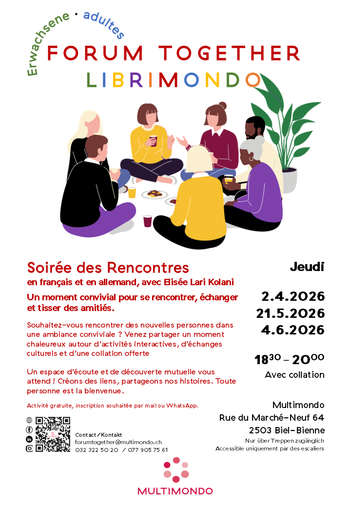 *Si vous êtes à Bienne ou dans la région, vous pouvez également vous adresser directement à Multimondo à l'adresse forumtogether@multimondo.ch.